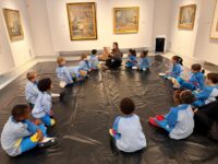 Durante la visita, Paula nos contó un cuento a través del cual nos acercó a la vida de Nicanor Piñole, explicándonos cómo era su familia, dónde aprendió a pintar y los viajes que realizó alrededor del mundo para formarse como artista.